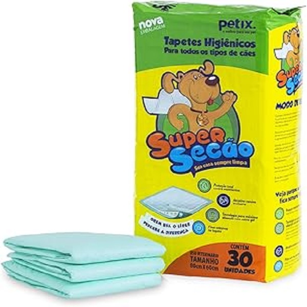Além de prevenir o mau odor, pois possui fragrância para mascarar o cheiro da urina. Com atrativo canino, ele facilita o adestramento do pet. Segundo a marca, o tapete higiênico Super Secão da Petix é capaz de absorver até 2 litros de xixi. Incrível, não é mesmo?